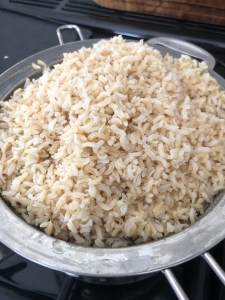 Start by getting the rice going – cook as usual (add to boiling water and boil until as soft as you like it). Drain and put to one side.