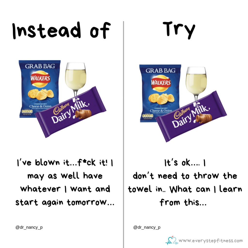 I’m sure we all do this – we over eat and instantly think we’ve blown it, give up for the day, over eat even more and think we’ll just start again tomorrow. Many of us experience feelings of shame, guilt, embarrassment, and stress after over-eating. These emotions typically do nothing but contribute to a continued downward spiral and for most of us they’re not productive emotions or thoughts.