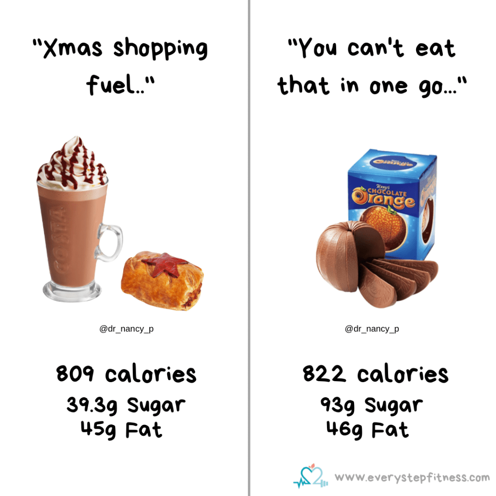 If you want the festive drink – have it and enjoy it. If you want to eat your way through a chocolate orange in one go then go for it. Just be aware of the calories so you’re making an educated choice!