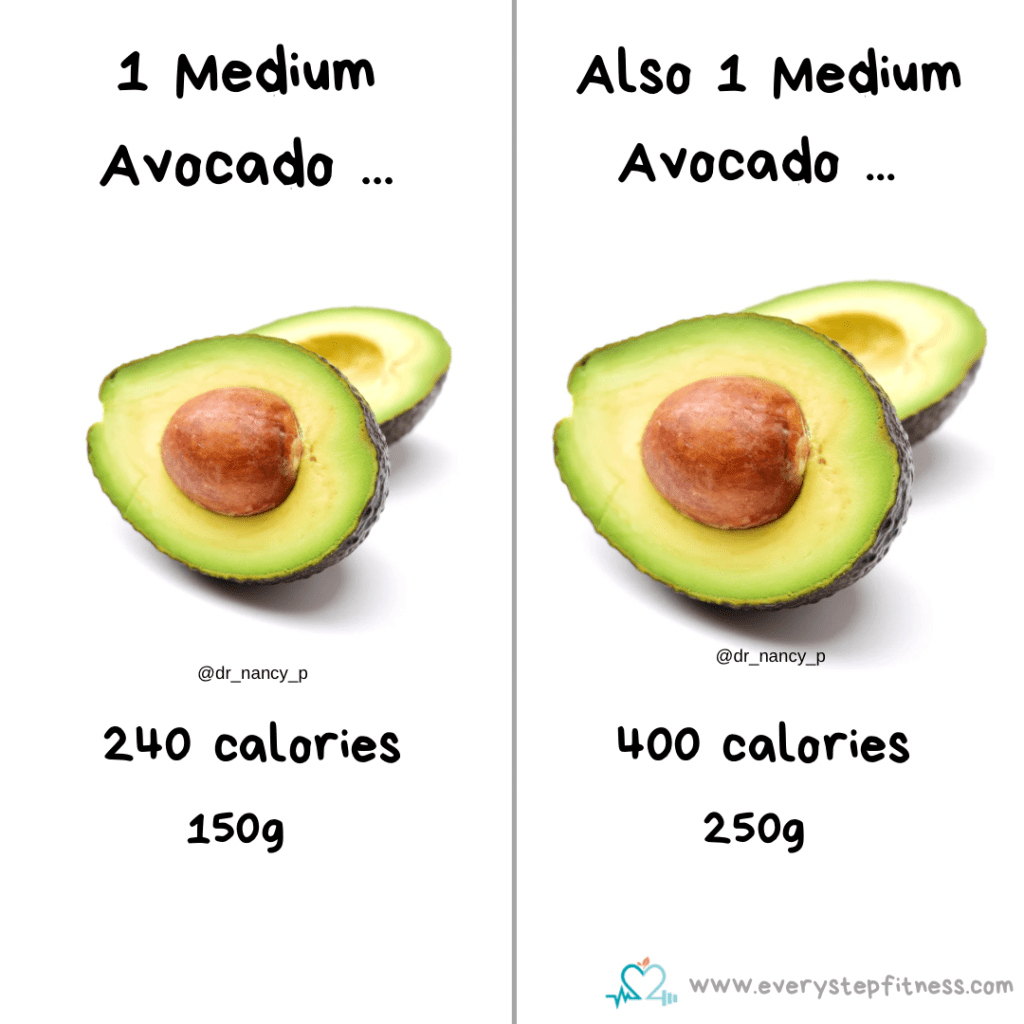 However, if you are trying to lose fat/weight and watching those cals then it’s worth just being aware that avocados can pack a punch when it comes to calories and they also vary significantly. If you’re using a calorie tracking app you’ll often find entries like ‘one medium avocado’ or ‘half a medium avocado ’ with the associated calories. You’d probably just enter that and assume you were pretty much right. But what exactly is ‘medium’? Medium to me may be small to someone else and the calorie differences are pretty significant!