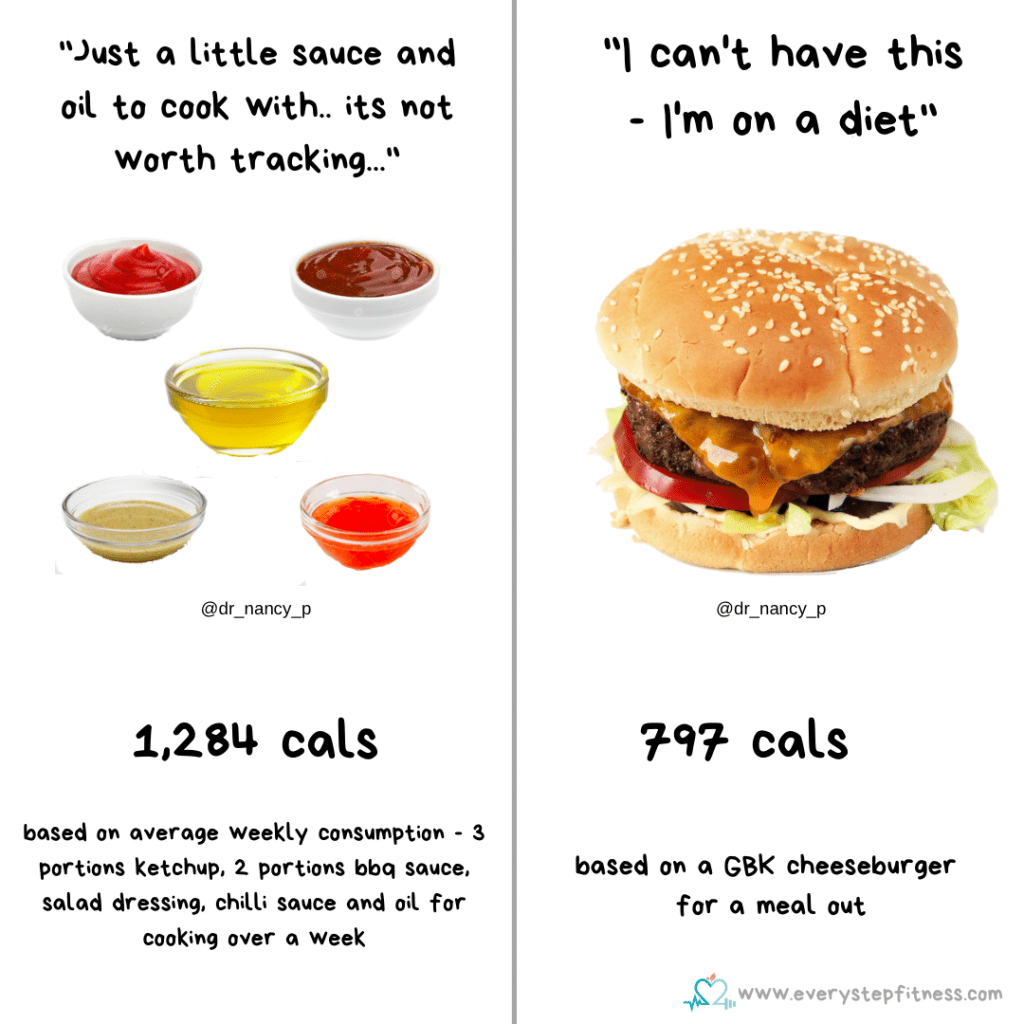 ‘It’s only a little sauce on the side, and a bit of oil for cooking – I don’t need to track that…’ 🤔