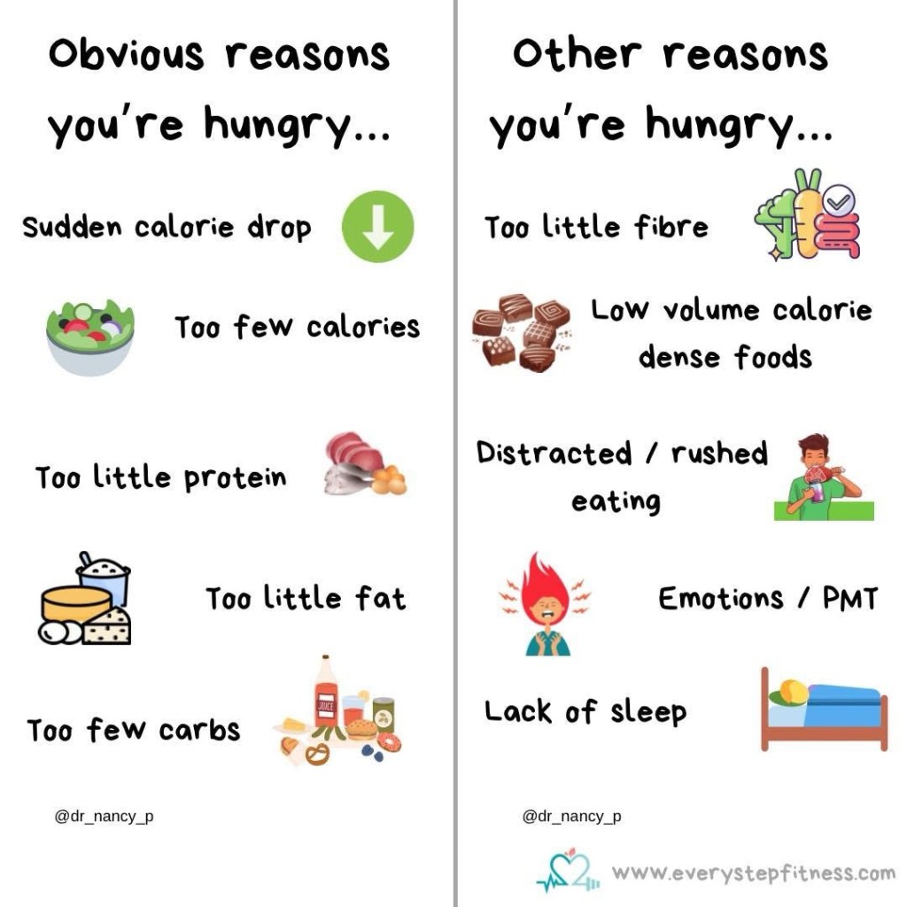 There are some really obvious reasons why you might be hungry. Remember a little hunger is a good thing so don’t be too quick to want to feed it! But if you’re starving hungry then it could be because you’re not eating enough calories – whilst obvious this probably isn’t the main reason tbh. You have probably just gone from eating several thousand extra calories a day over Christmas and new year, to eating normally or cutting calories – so yes you will be hungry! Your body is expecting large amounts of calories that you’re now not eating.