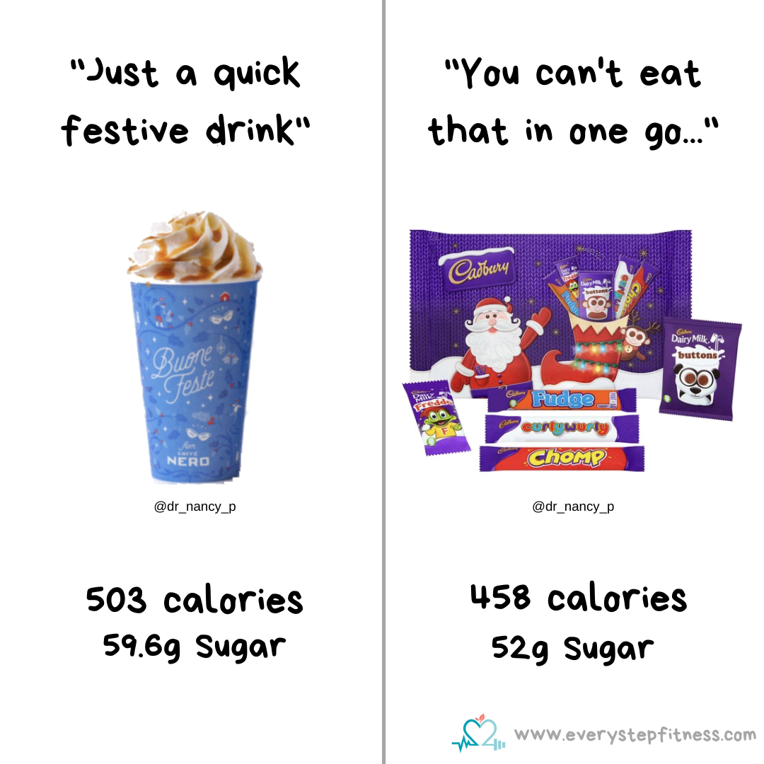 At this time of year all the coffee shops bring out their range of festive coffees and hot chocolates. You’re out Christmas shopping, or meeting up with friends and family, so you just grab a quick festive drink to enjoy and get you in the festive spirit. You’ll drink it in minutes, and possibly have a snack with it, without really thinking or noticing. But that’s ok, because it’s just a festive hot choc, and it’s Christmas….