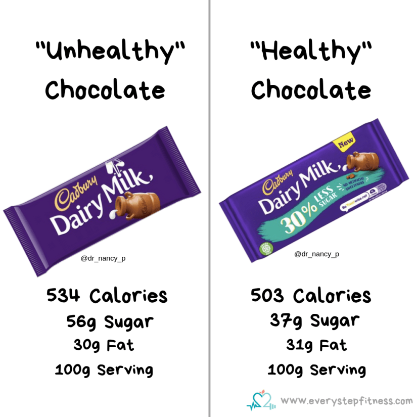 So if you’re trying to reduce your calories and are going for the reduced sugar versions of things you love just take some time to check the calories and portion sizes and see if there really is a difference. If you enjoy the reduced sugar option and it helps to keep you on track then go for it! But don’t pay more for a marketing ploy when you don’t need to. Enjoy the chocolate you like, in moderation, as part of a balanced diet 🤗