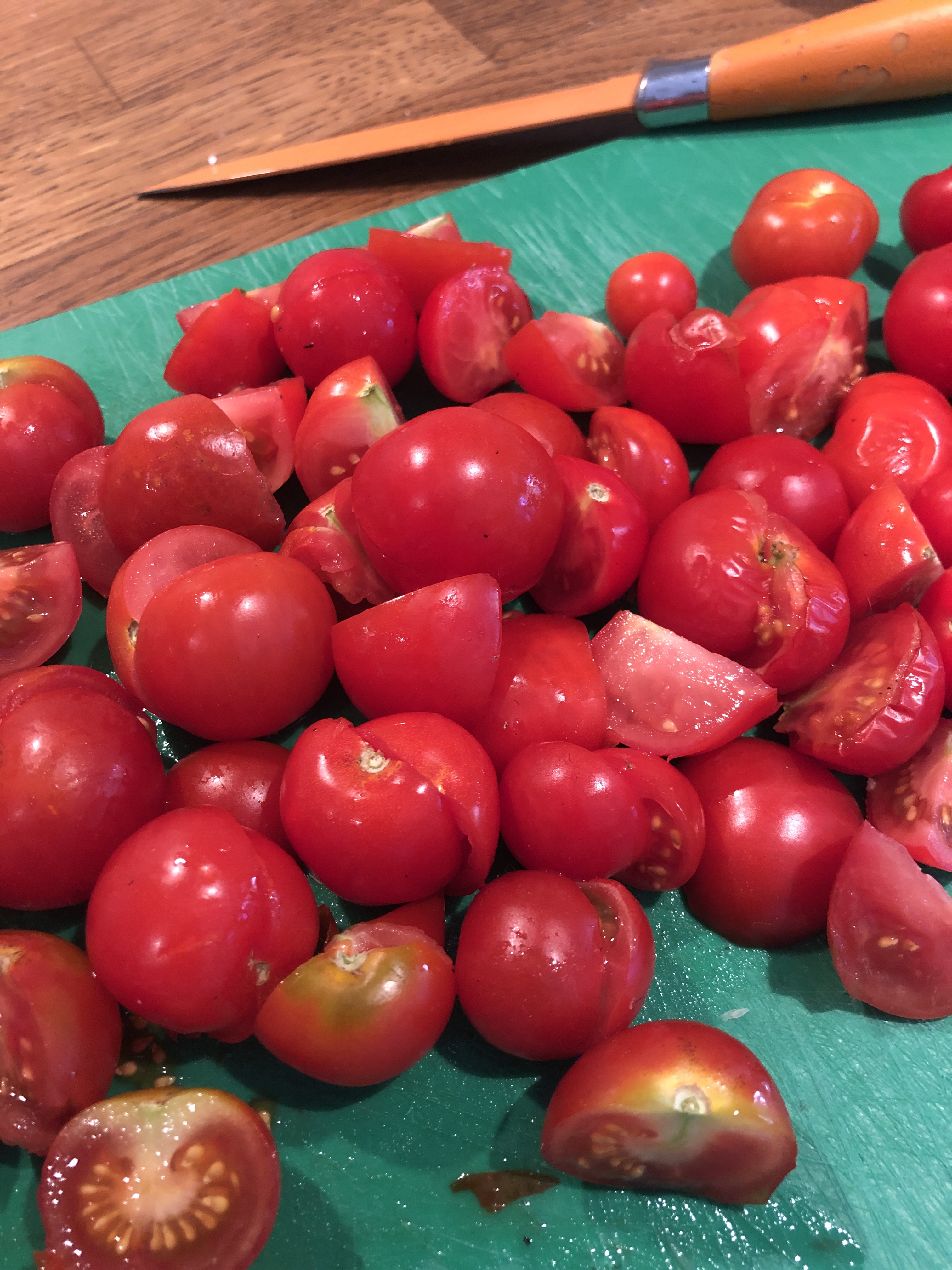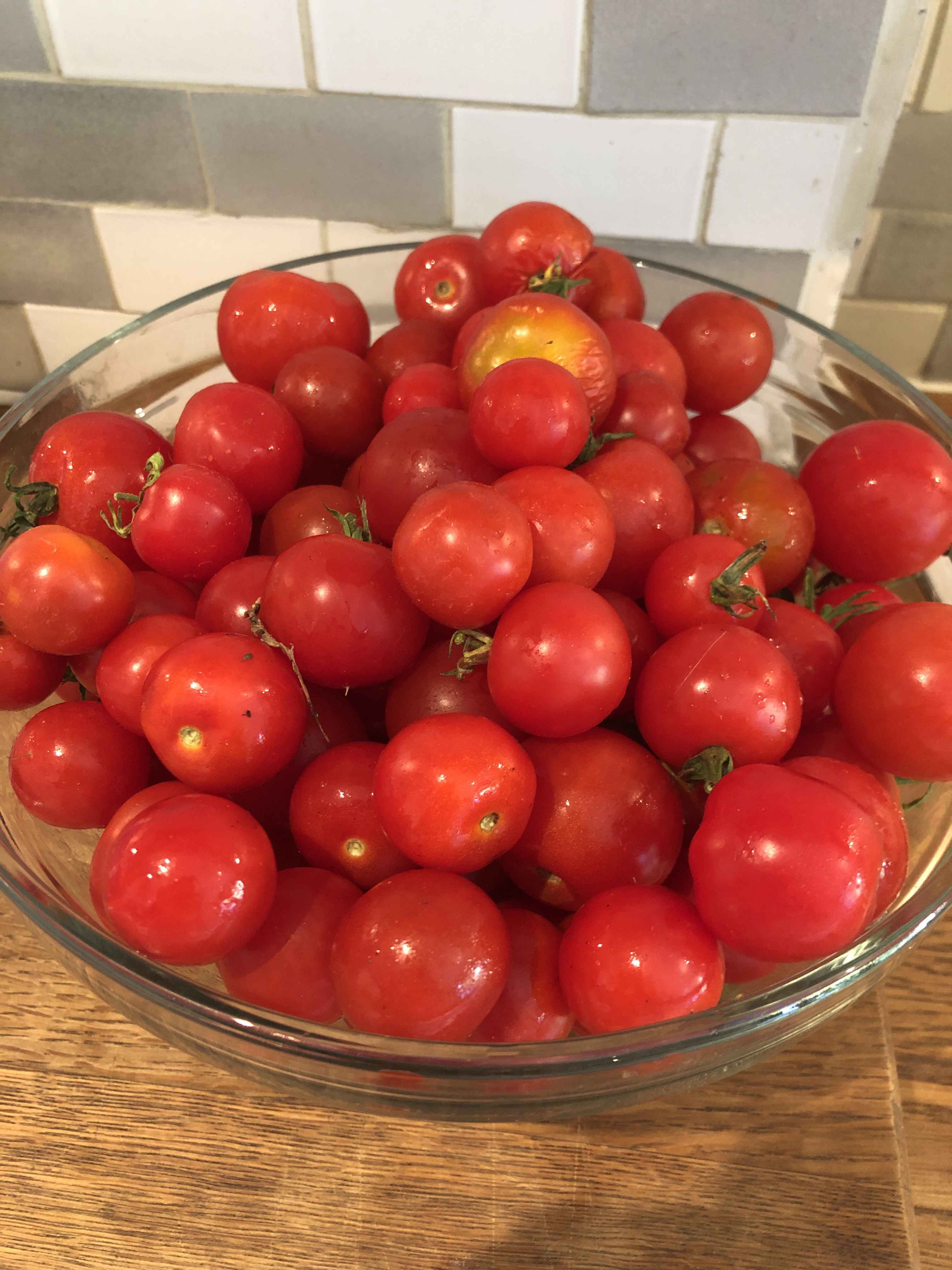 We had a massive glut of cherry tomatoes in the garden this year, so I thought I’d use them for a nice, light soup! You can actually use any tomatoes you like but cherry ones do lend a lovely sweetness.