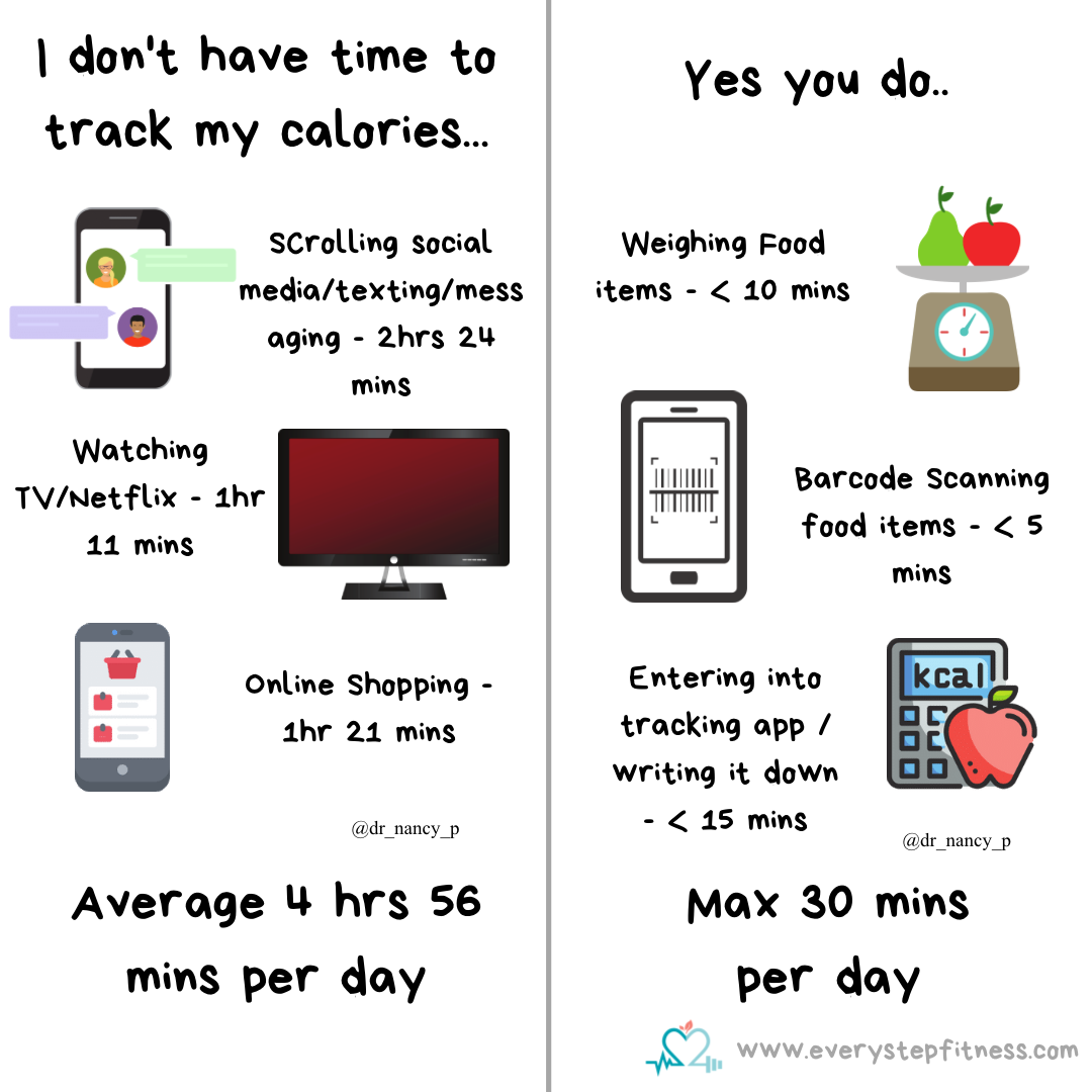 In this example, oats are often measured in cups, especially on tracking apps. A serving is half a cup which is assumed to be 40g. So you may think it’s ok to just go with a half cup when scooping out your oats. In reality though a loosely filled half cup is actually closer to 55g. This is an extra 56 cals per portion. 56 cals may not seem like much but if you were also measuring other things in your oats with cups/measuring spoons (like a tbsp peanut butter, tsp jam etc etc) and all those are out too then you’re consuming quite a bit more than you realise. If you’re doing that daily that’s over 390 cals a week, which is enough to affect your progress.